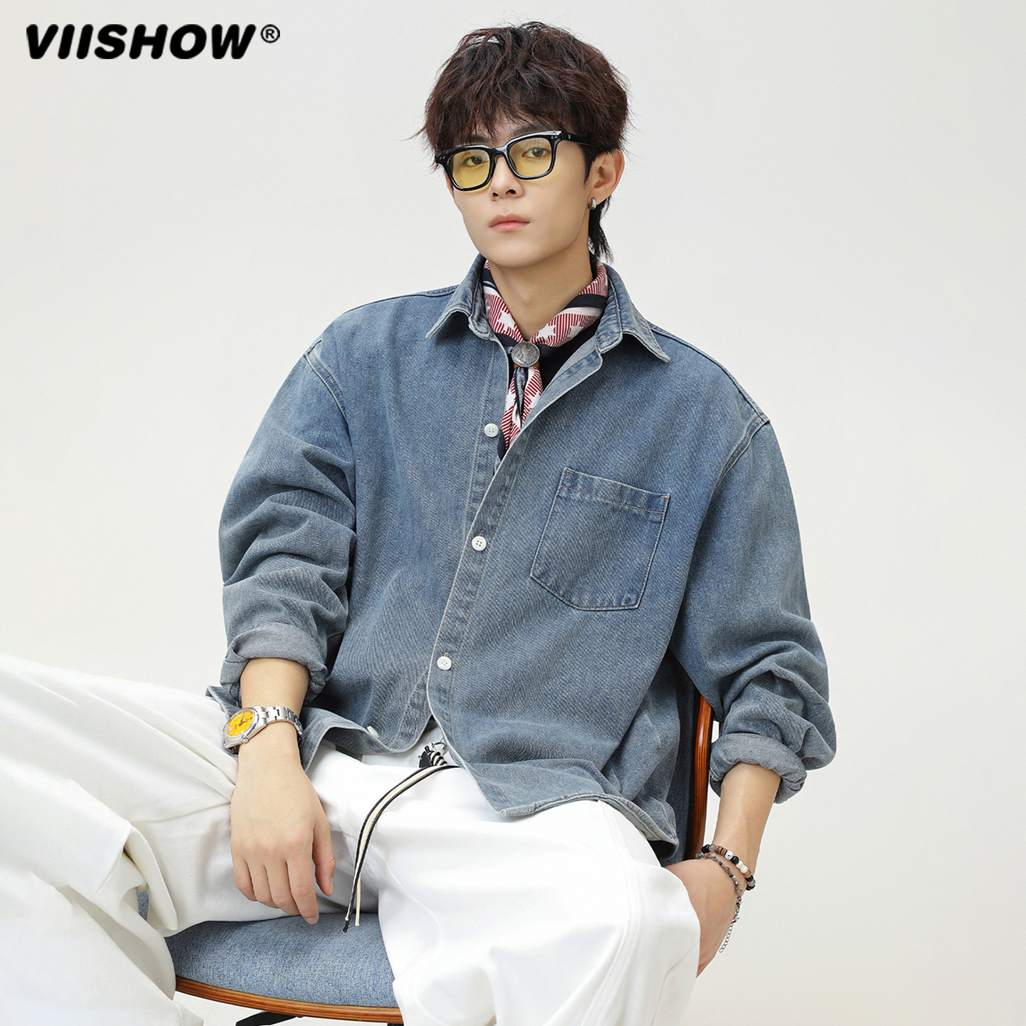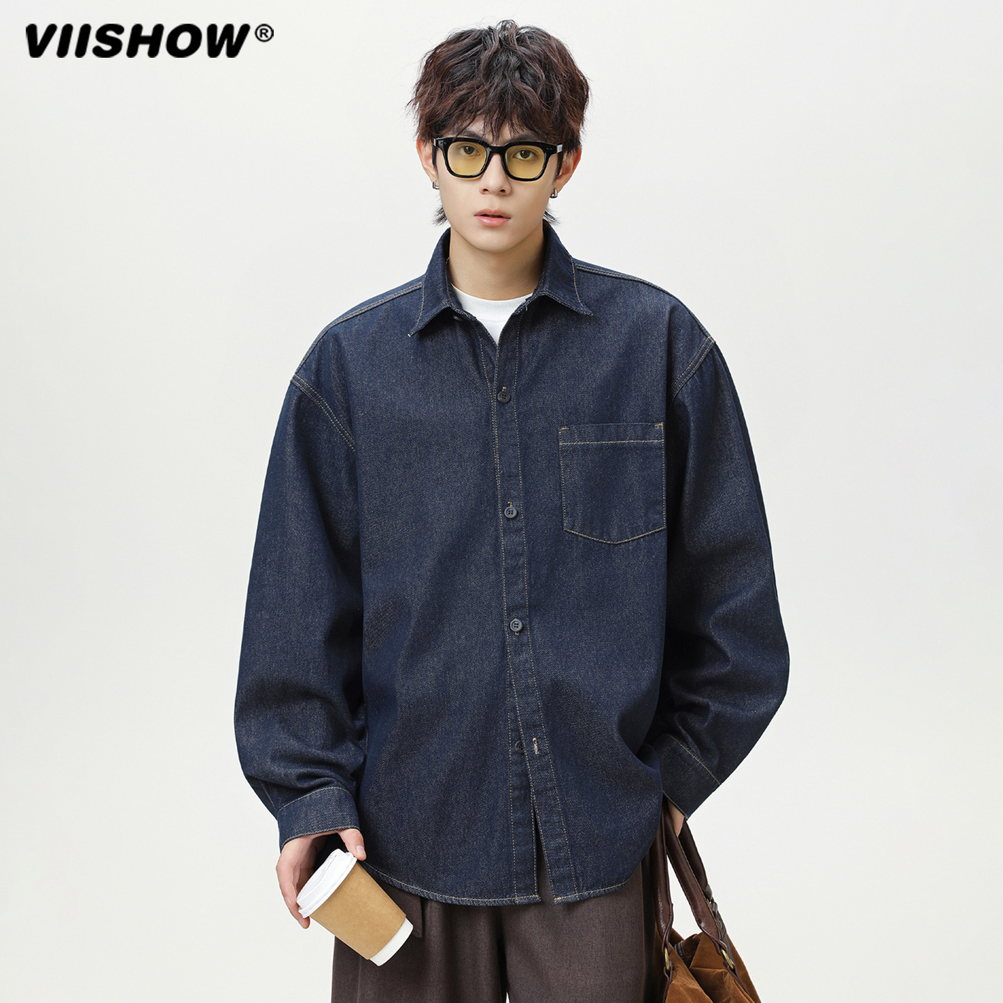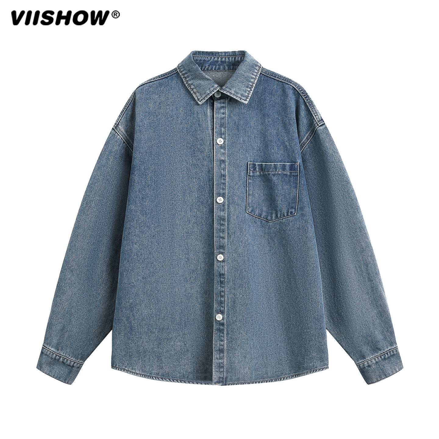 日系水洗复古潮牌痞帅工装 男2025秋季 衬衣外套 牛仔衬衫 hansca长袖