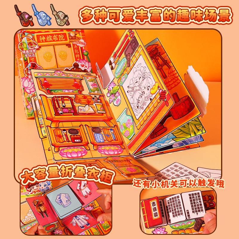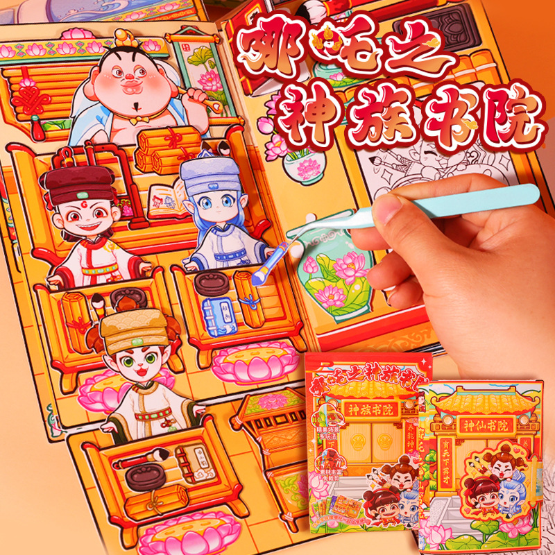 哪吒安静书新款 贴纸儿童手工玩具女孩 敖丙学院免裁剪diy材料换装