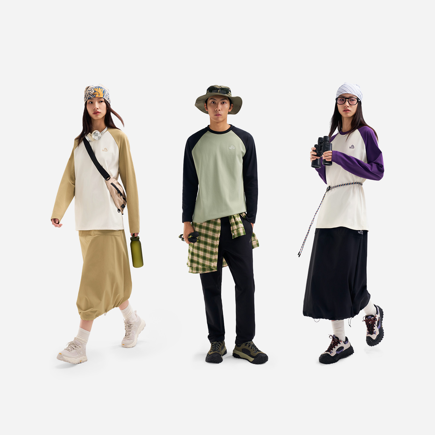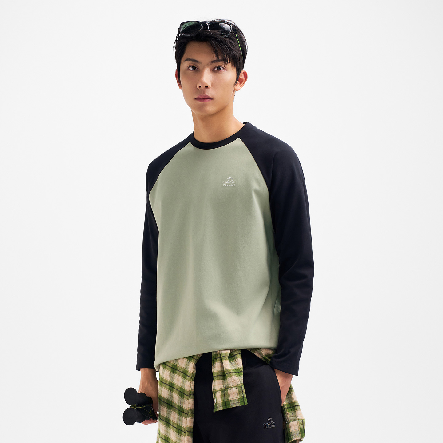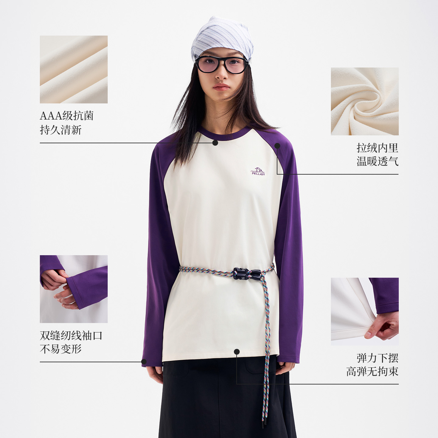 T恤男女同款 伯希和户外长袖 休闲圆领上衣拼色插肩打底衣 山系