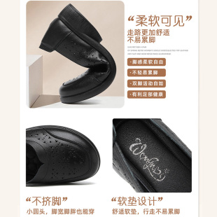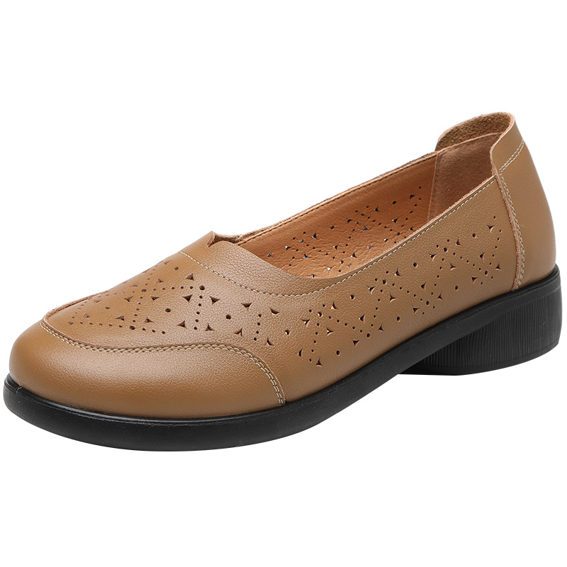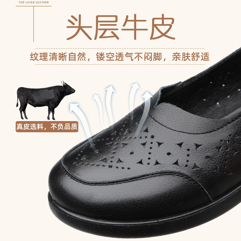 女鞋 中年透气舒适大码 清仓 软底防滑洞洞皮鞋 旺奈真皮镂空妈妈凉鞋