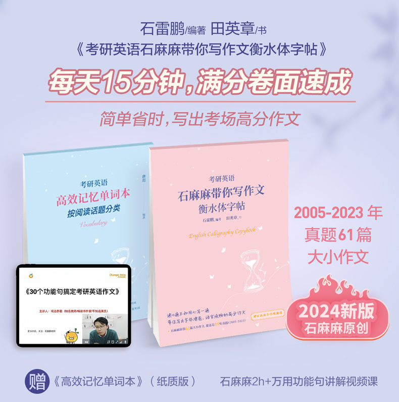 冲刺20篇 官方现货 写作字帖 30个功能句搞定英语作文 26考研英语一英语二满分作文历年真题范文高分写作 石雷鹏2026考研英语写作