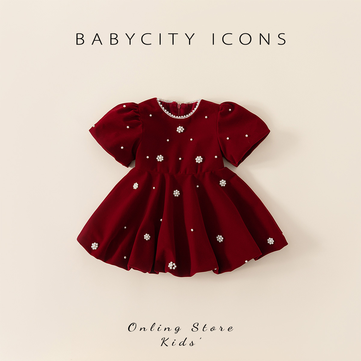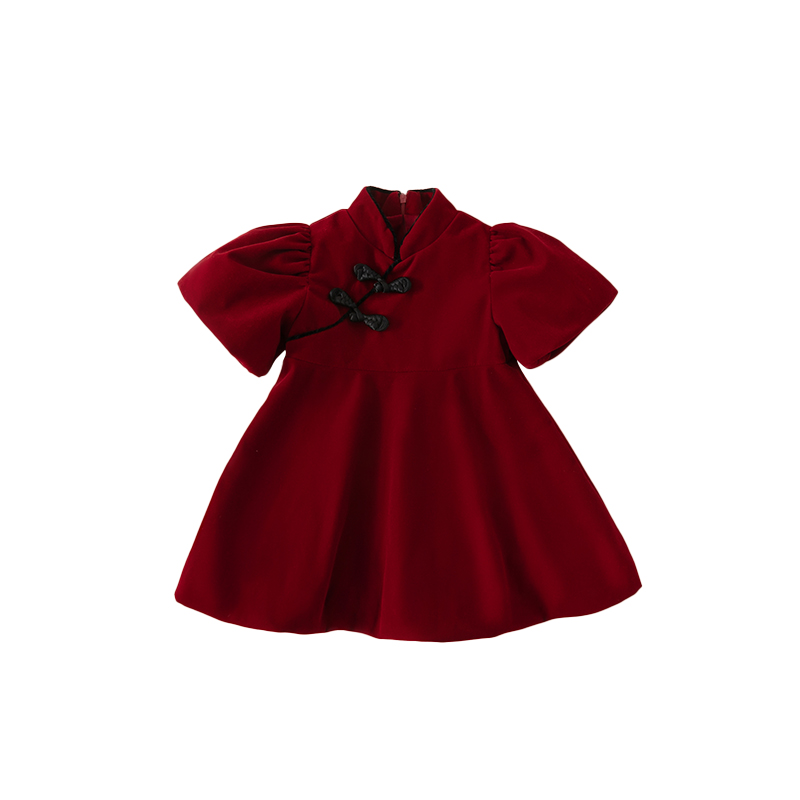 周岁女宝礼服女童连衣裙女孩公主裙宝宝生日红色裙子旗袍儿童衣服