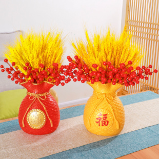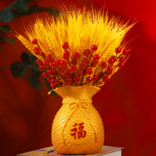 黄金大麦穗仿真花客厅干花花束插花瓶结订婚福桶装 饰乔迁开业摆件