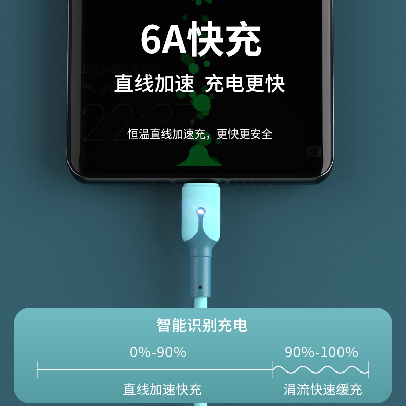 配耐新款 6A超级快充数据线适用vivo华为荣耀小米苹果安卓usb接口手机充电线器tpyec车载硅胶传输多功能通用