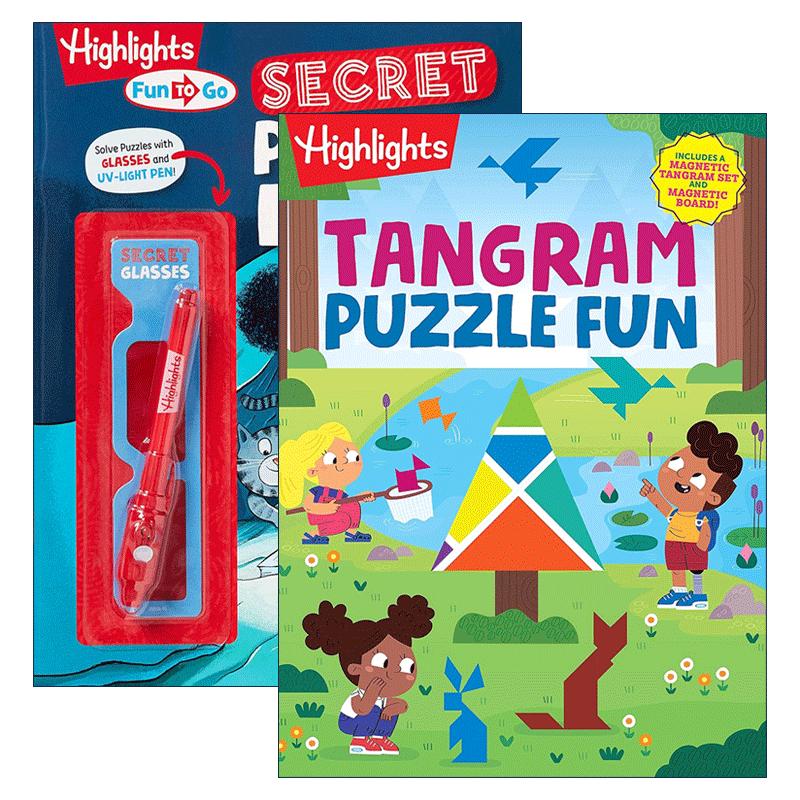 进口 迷宫 亮点儿童益智游戏活动书 Highlights Fun 隐藏图片 Deluxe 字谜 英文原版 秘密 逻辑谜题 七巧板谜题乐趣系列2册