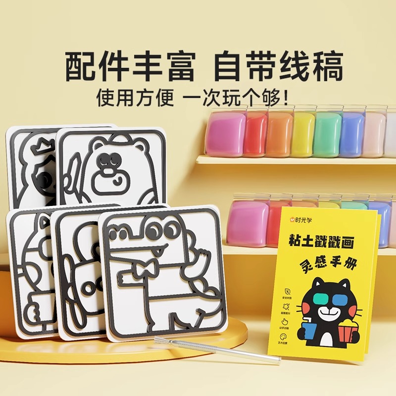时光学创意粘土戳戳画儿童百变手工DIY创意制作套装 轻粘土幼儿园男女孩益智思维训练启蒙设计手工制作diy益智启蒙儿童涂鸦填色玩具