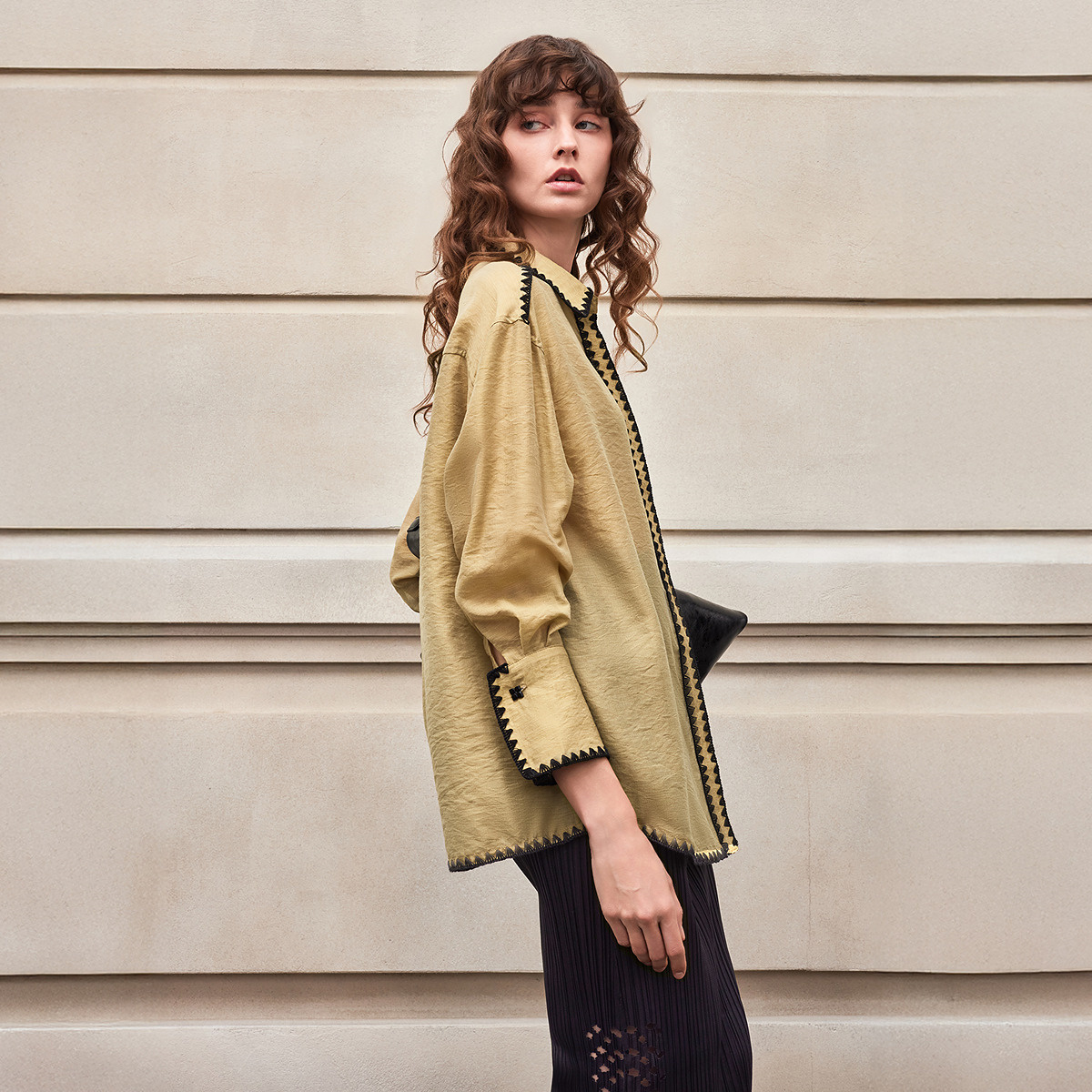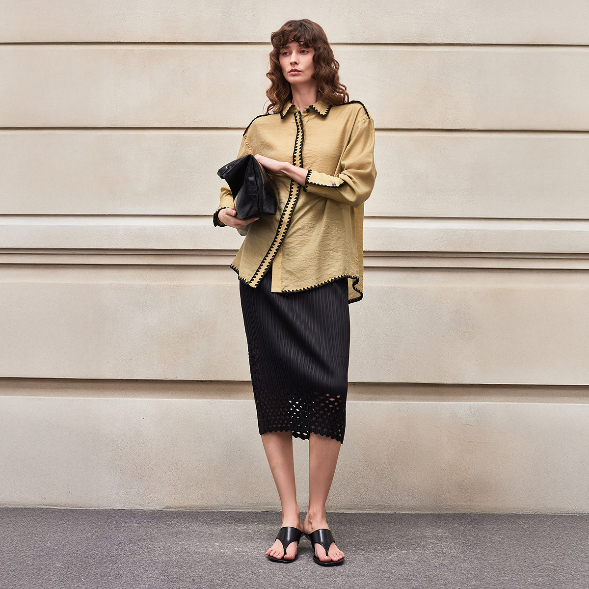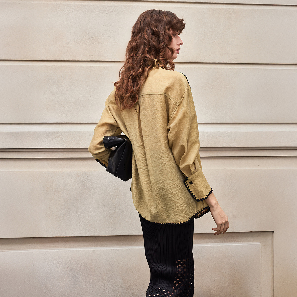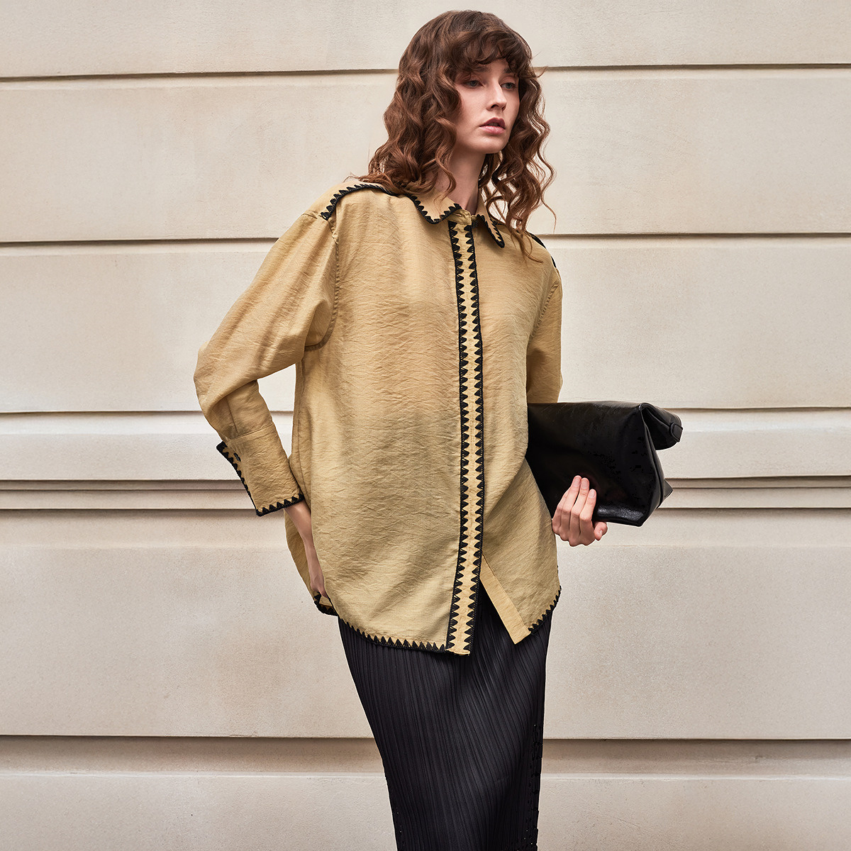 高级通勤衬衫 浅春系穿搭撞色立体贝壳绣经典 2025夏新品 BCBG