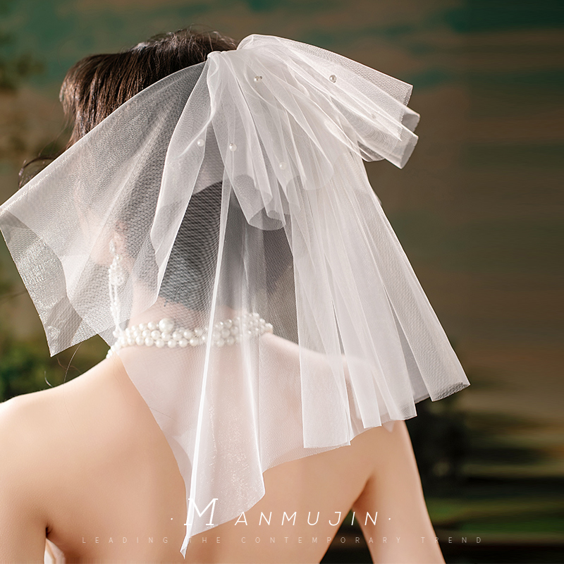 领证求婚仪式 双层订珠头纱 感小头纱新娘结婚登记拍照道具头饰短款