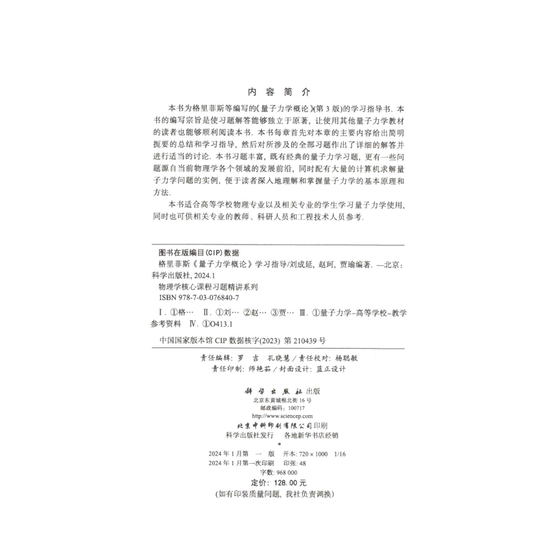 量子力学概论 传媒股份有限公司新华书店正版 学习指导刘成延 贾瑜大学教材中国科技出版 赵珂 格里菲斯
