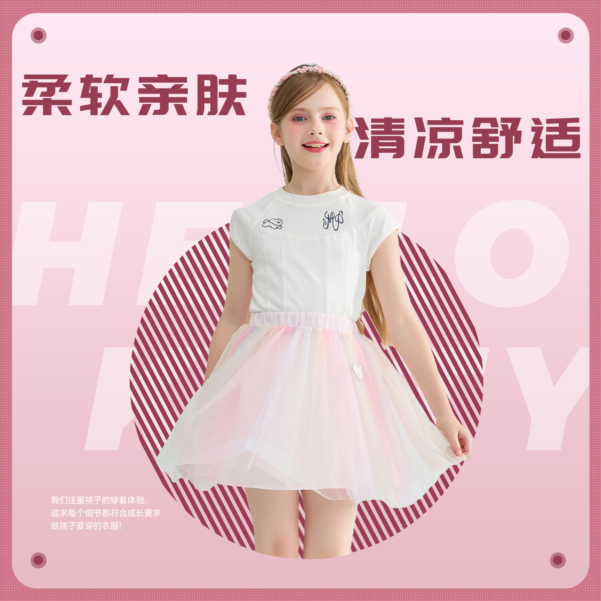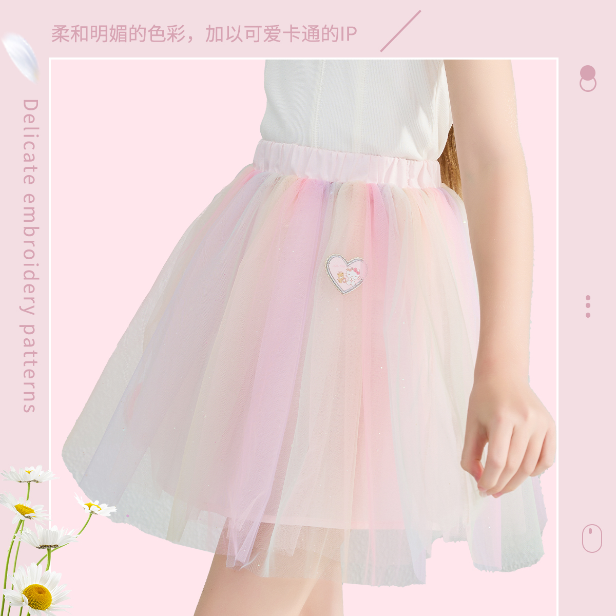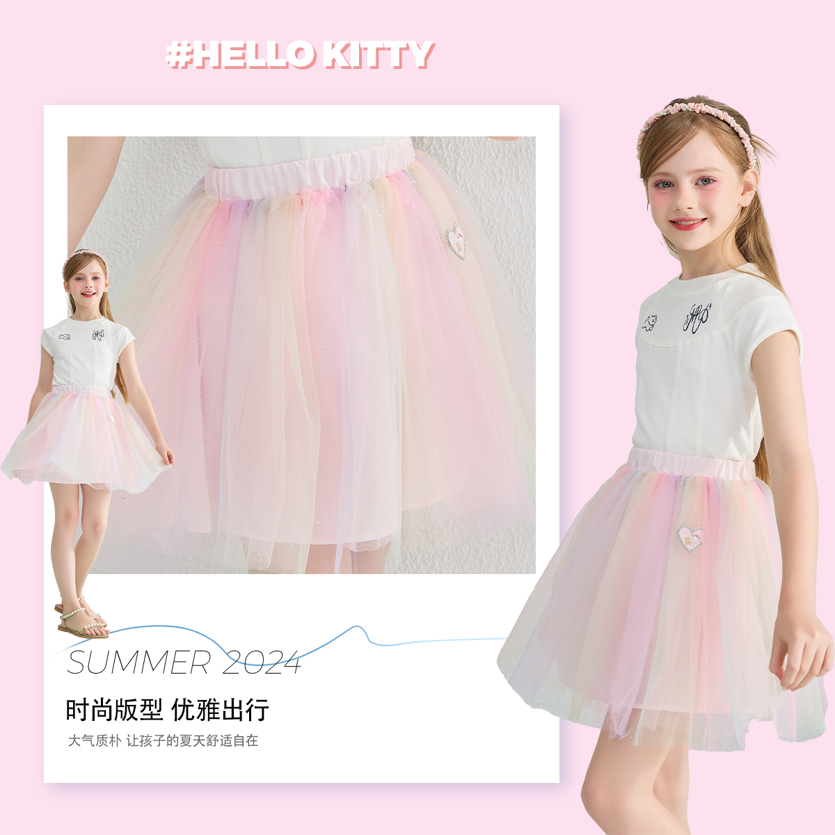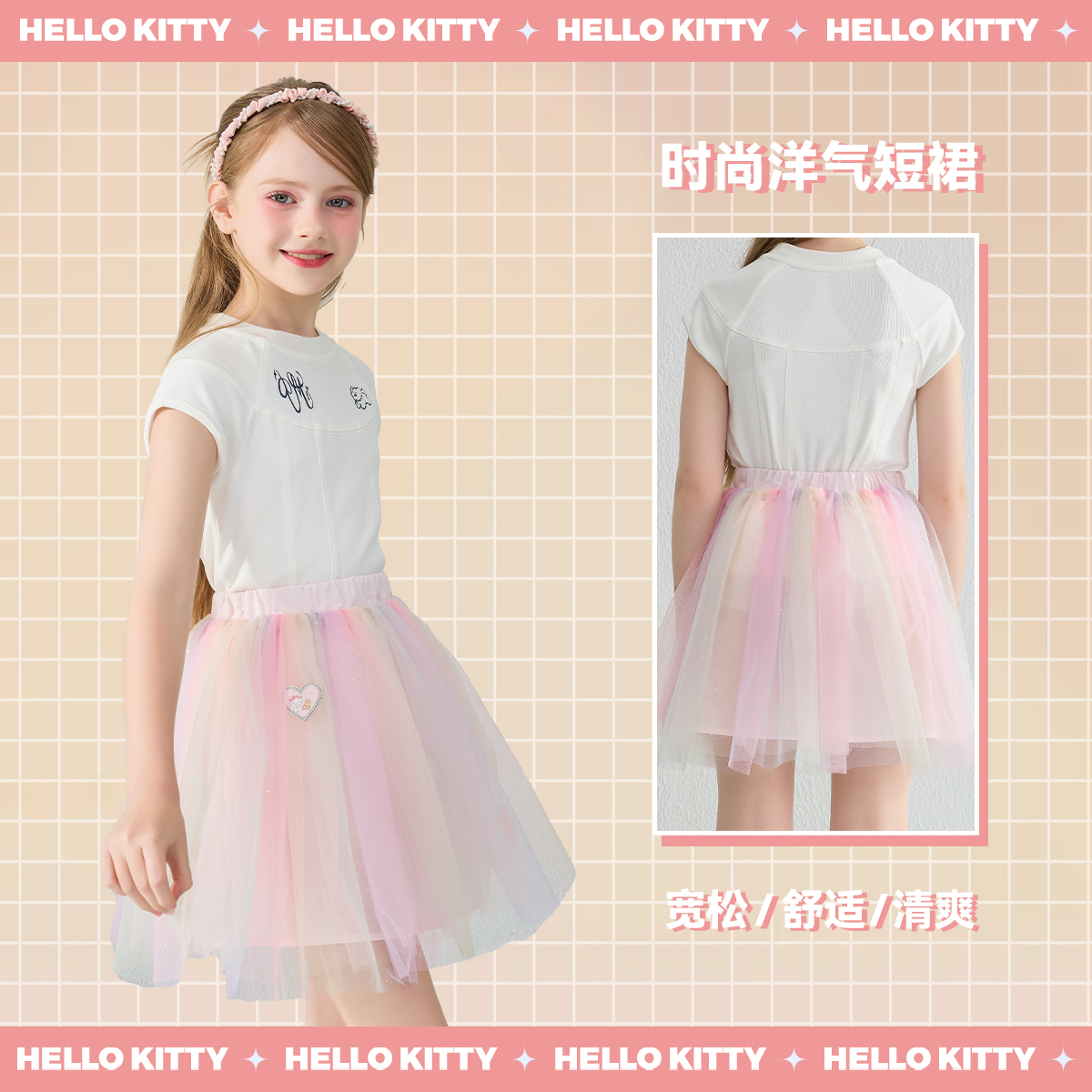 Hello 公主裙清凉舒适柔软亲肤裙 Kitty百褶渐变网纱短裙女童夏季