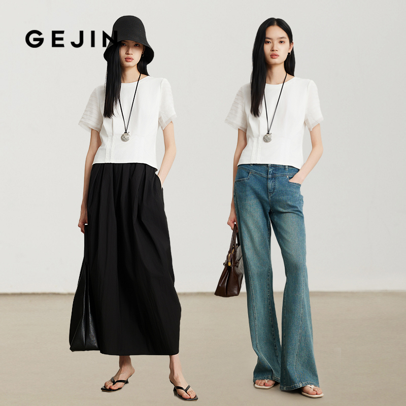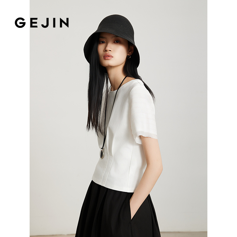 上衣收腰抗皱不变形 新款 歌锦高品质立体褶皱短袖 T恤女2025夏季