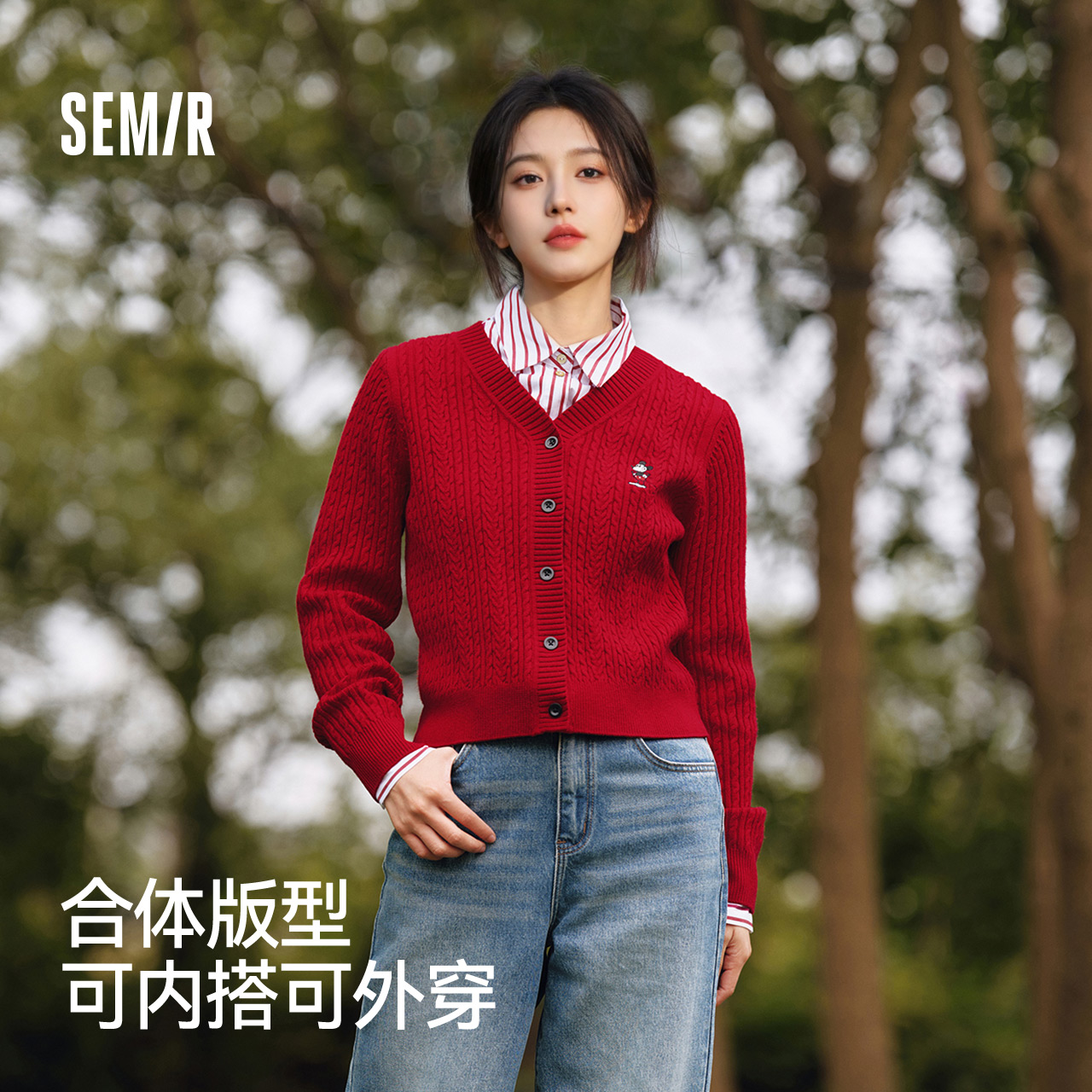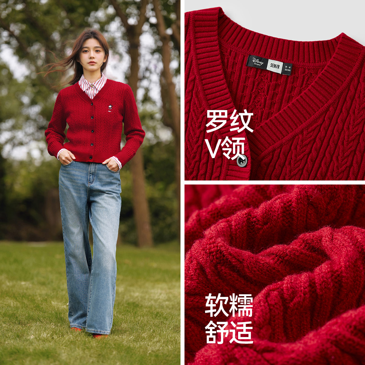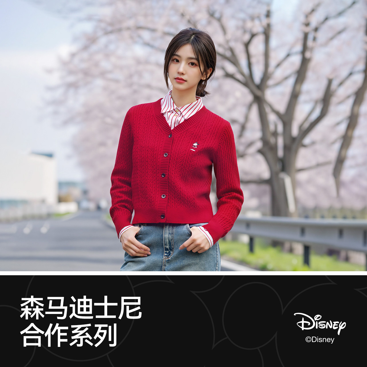 女毛衣春新款 森马迪士尼合作系列红色毛衣针织毛衫 上衣 商场同款