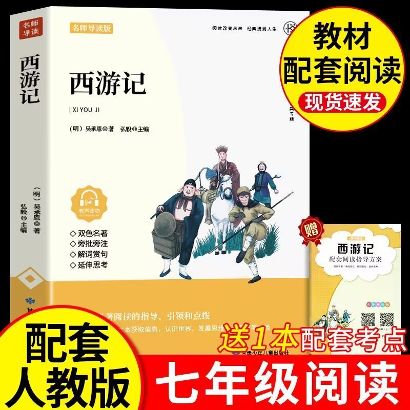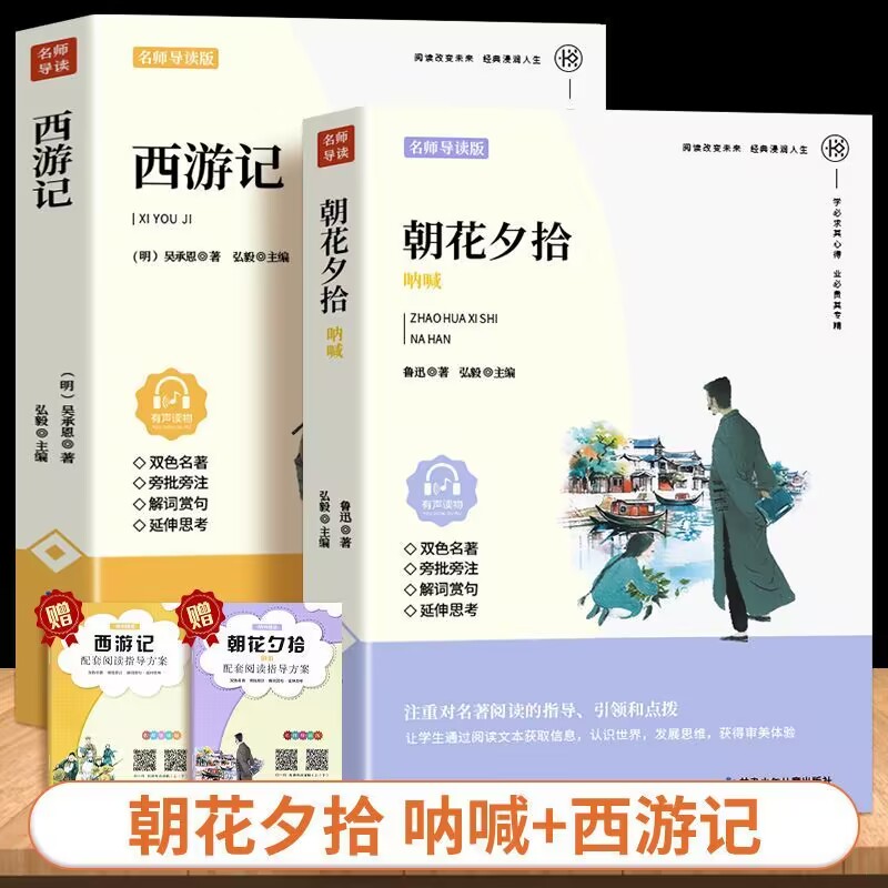 课外阅读书籍配套人教版 朝花夕拾和西游记 初中生7年级上册下册课外书初一中学生版 名师导读版 七年级必读书鲁迅原著正版