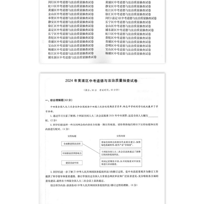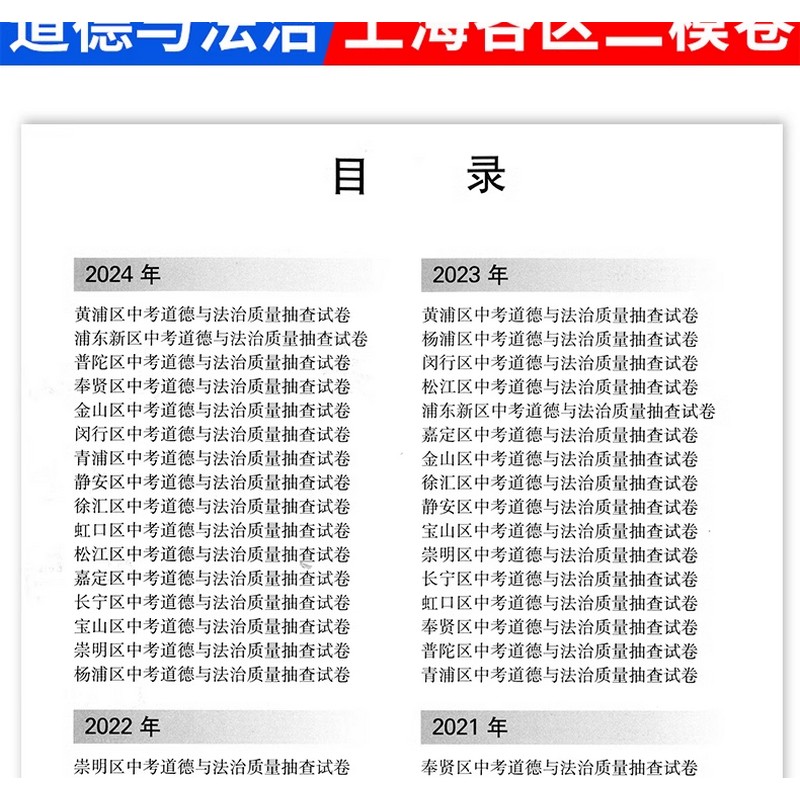 2024年版 上海市初三初中九年级期末抽查模拟试卷 走向成功上海市中考二模卷道德与法治 四年合订本 中西书局 仅试卷 2021