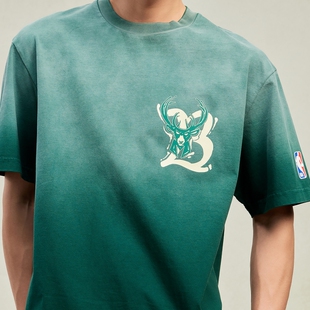 NBA联名雄鹿队夏季 T恤男装 宽松渐变肌理字母胶印 短袖 杰克琼斯男士