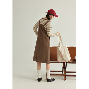 打底衫 新款 复古工装 女春秋季 背带裙两件套装 紫涵撞色圆领条纹长袖