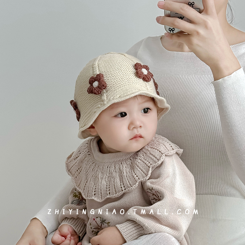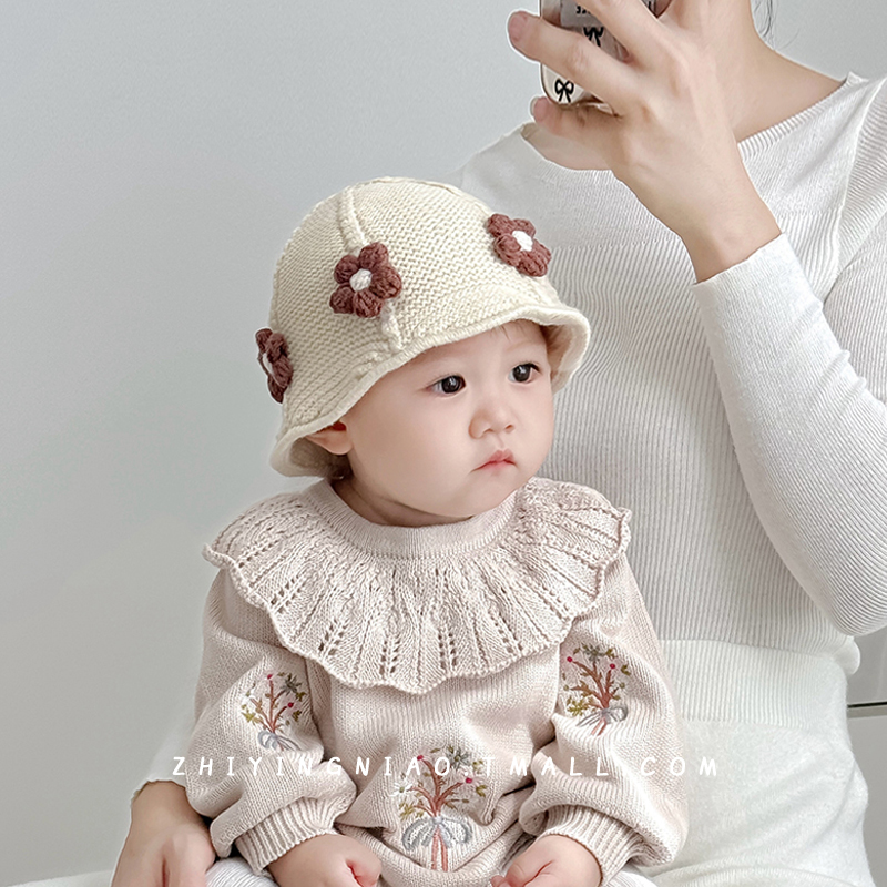 婴儿帽子秋冬季 渔夫帽可爱超萌宝宝冬天外出防风男女童针织防晒帽