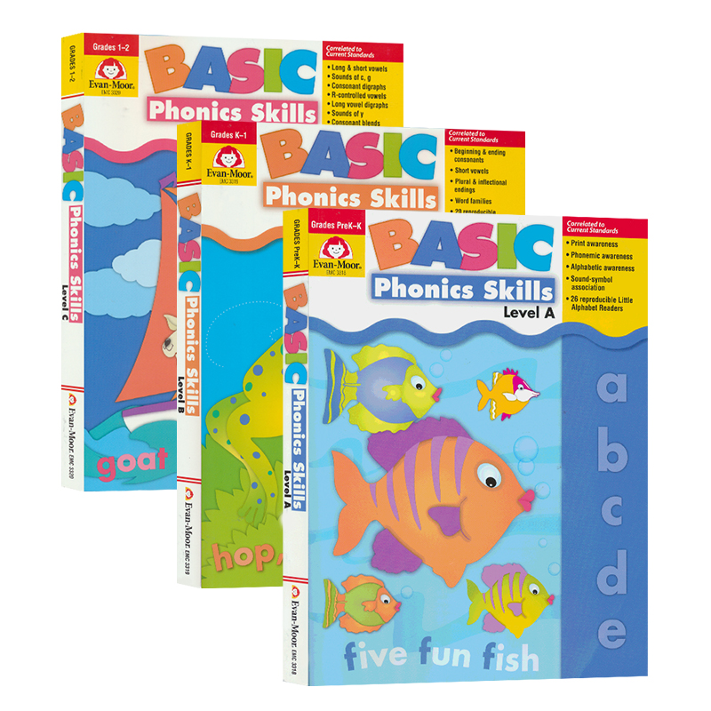 Skills 美国加州 Moor Phonics 幼儿园小学 Evan 儿童英语零基础自学 Level Basic 自然拼读系列 基础练习 ABC 英文原版 ABC阶3册