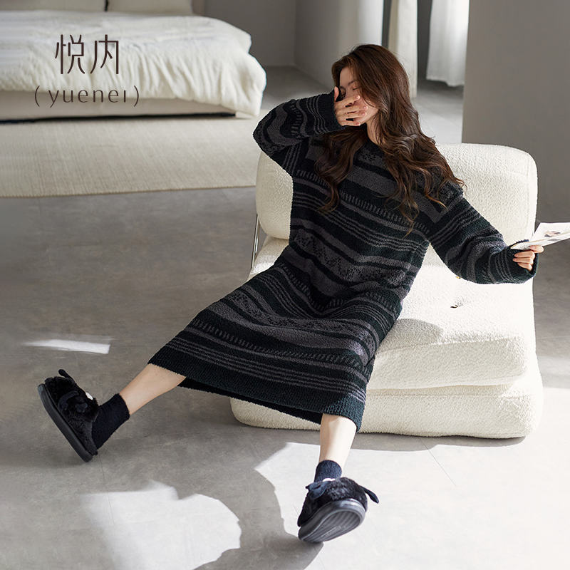 大码 悦内半边绒睡裙女款 加厚加绒珊瑚绒长款 冬款 可外穿 睡衣秋冬季