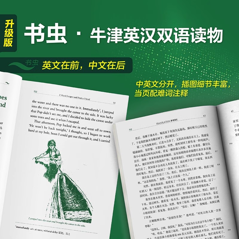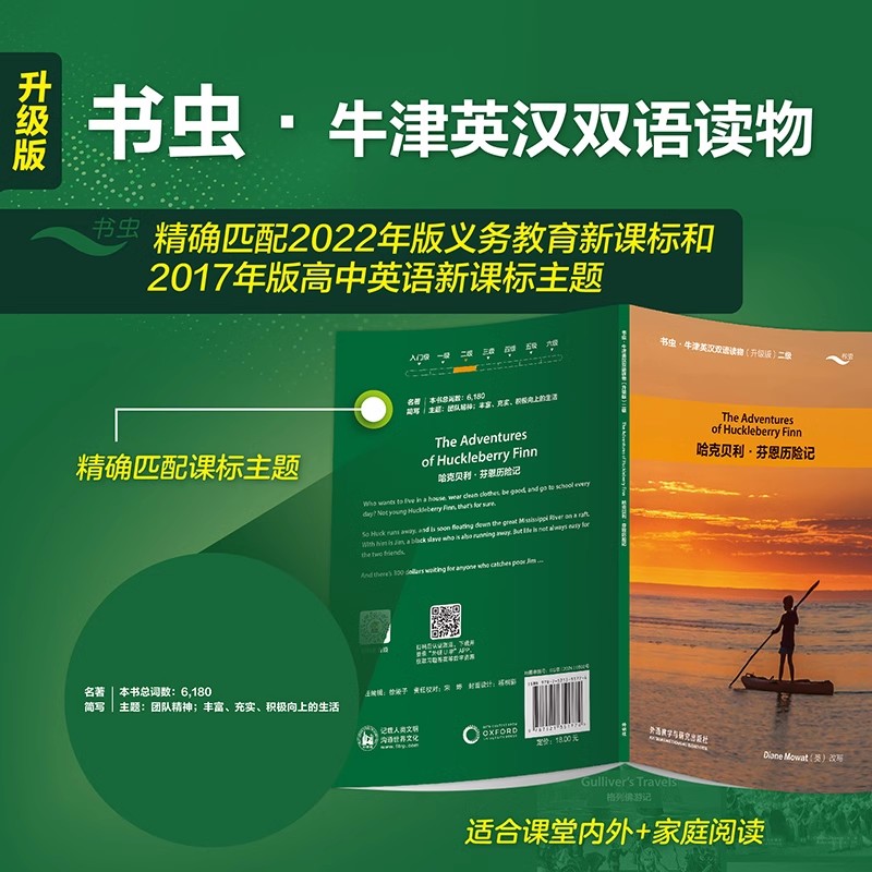 书虫 社扫码 升级版 第2级适初二初三年级中英文互译译林八九年级英语课外阅读外语教学与研究出版 音频 哈克贝利.芬恩历险记 正版