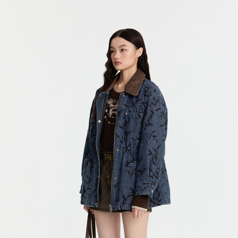 REVAN芮范新品 重工珠片牛仔棉服外套RM90111198 设计师款