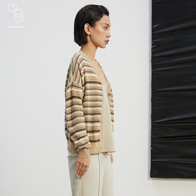 针织衫 条纹短袖 长袖 开衫 毛衣外套 RARN2025秋装 两件套圆领修身 新款
