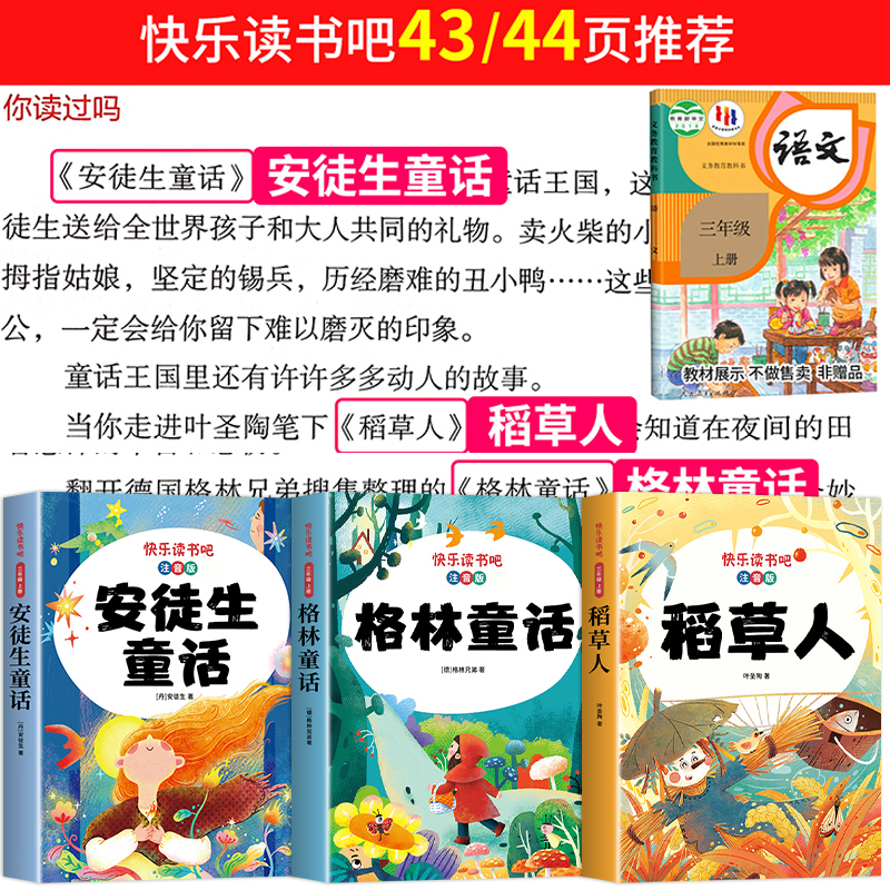 书目上册稻草人书格林童话故事全集一二年级爱安图古代 小学快乐读书吧三上阅读书籍推荐 安徒生童话三年级必读正版 课外书注音版