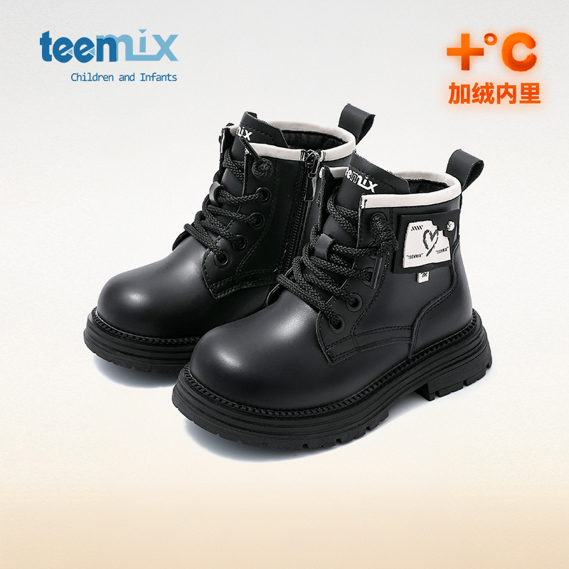 天美意儿童马丁靴女童靴子冬季 女宝宝短靴 加绒男童雪地靴2025新款