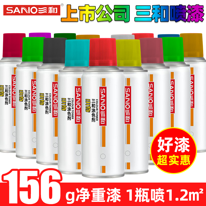 整箱12瓶批发三和自动手摇自喷漆涂鸦银色黑色白色金属防锈油漆罐