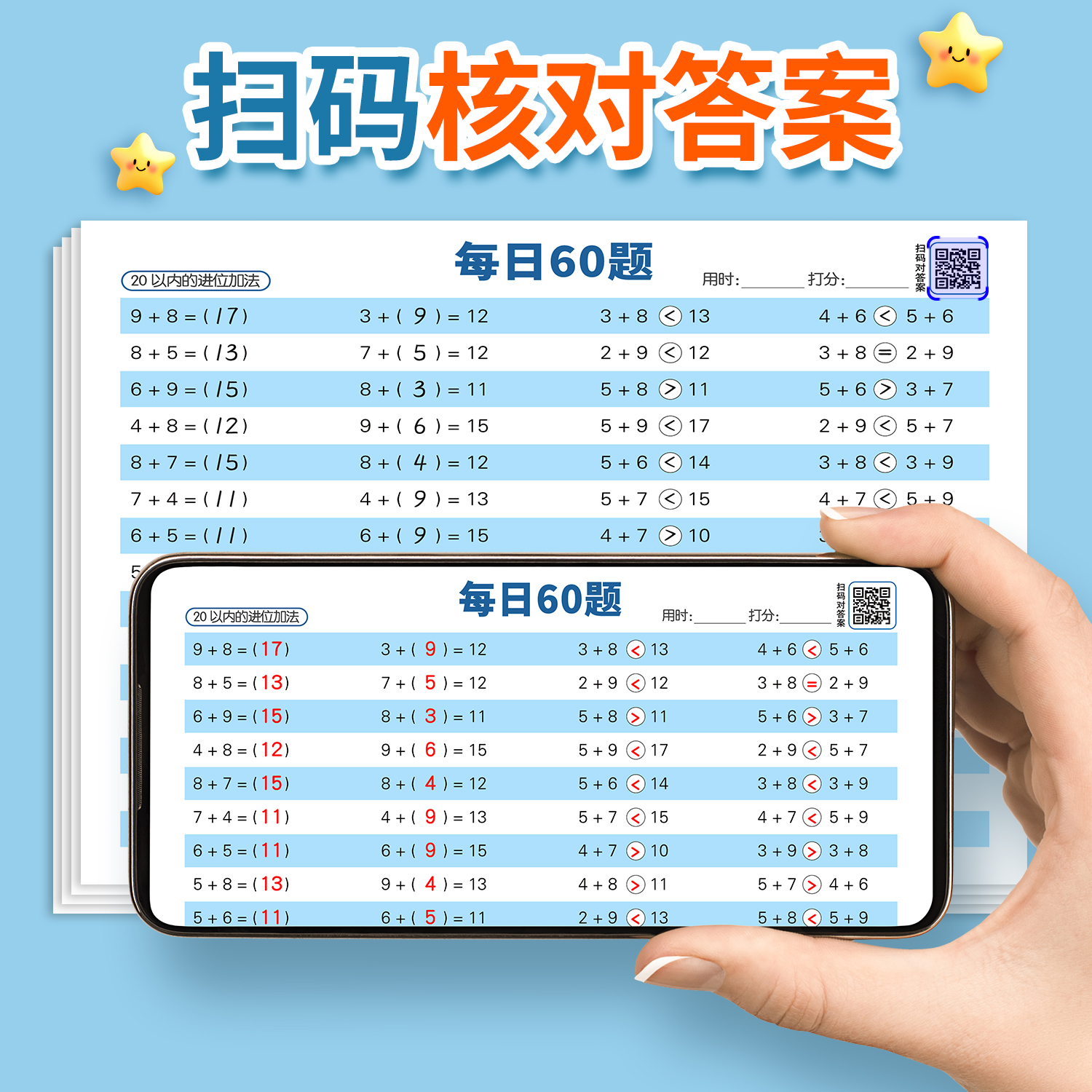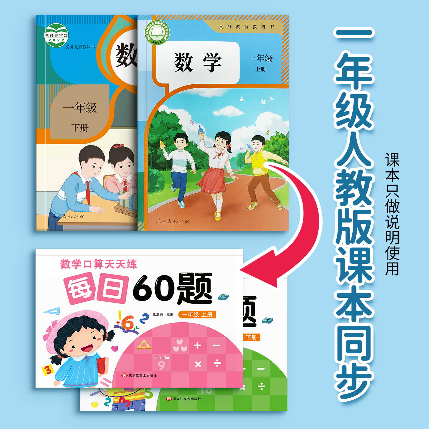 一年级口算天天练人教版 上册下册数学口算题卡每日50题60题小学1年级数学练习题上口算卡片口算题计算题思维训练同步口算练习册