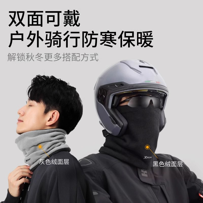 特步骑行保暖围脖套护颈男款 加绒防风防寒面罩摩托骑车围巾 冬季