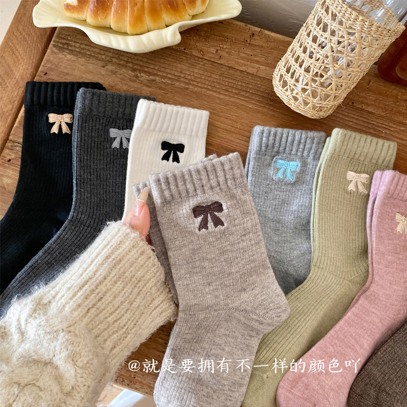 羊毛袜子女秋冬ins潮纯棉中筒袜美拉德长筒袜蝴蝶结女秋冬棉袜
