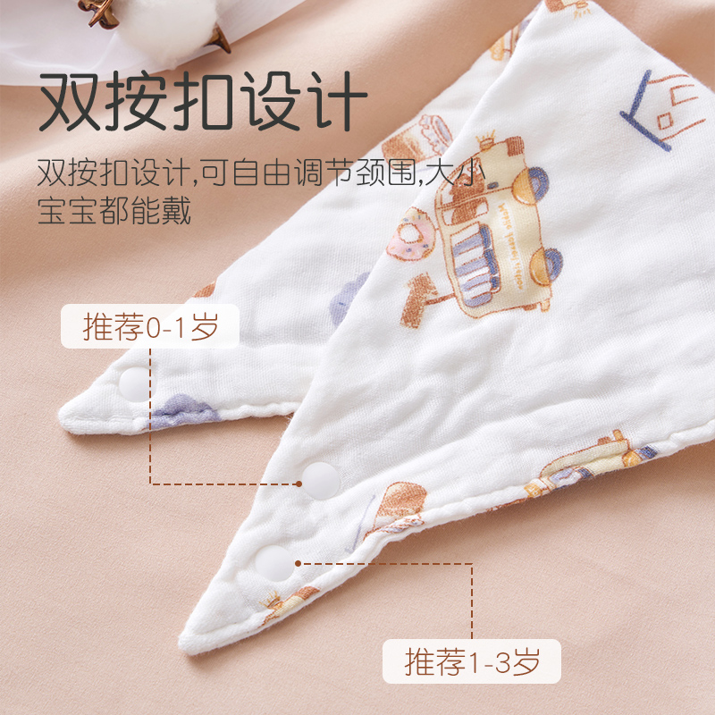 宝宝纯棉口水巾抗菌泡泡纱围兜儿童柔软亲肤围巾婴儿吸水三角巾