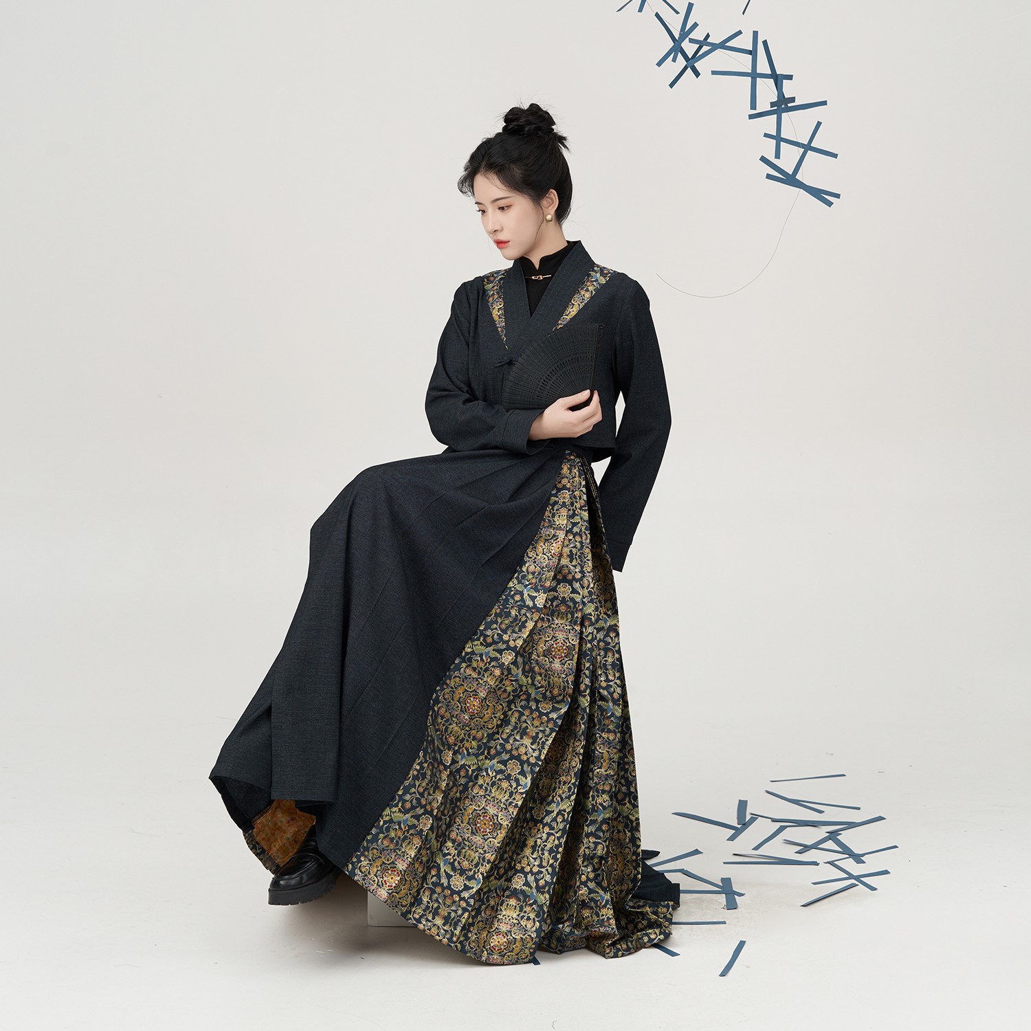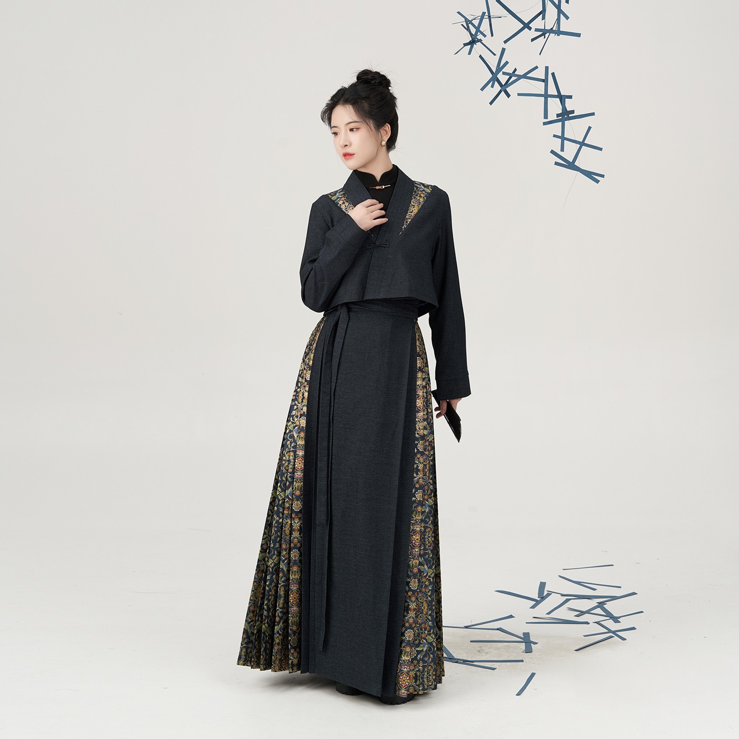春夏款 醉雨朵 日常明制汉服女2025新款 高端马面裙套装 藏蓝鹿神