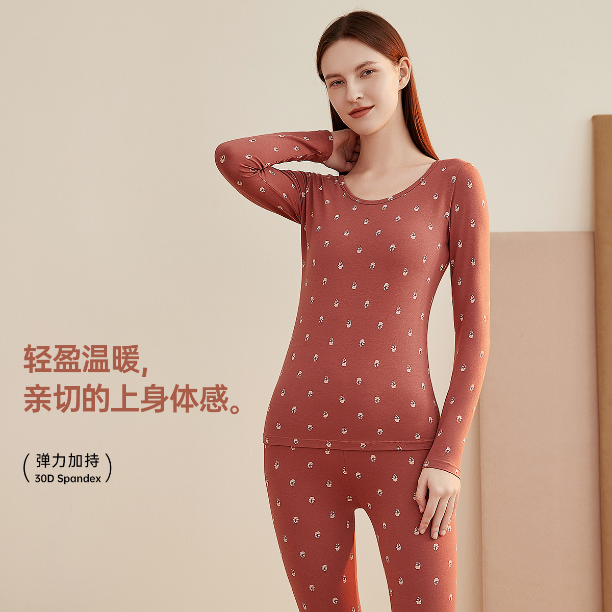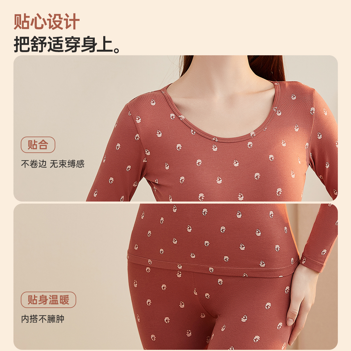 套装 顶瓜瓜保暖内衣女士纯棉秋衣秋裤 保暖舒适高弹印花棉毛衫