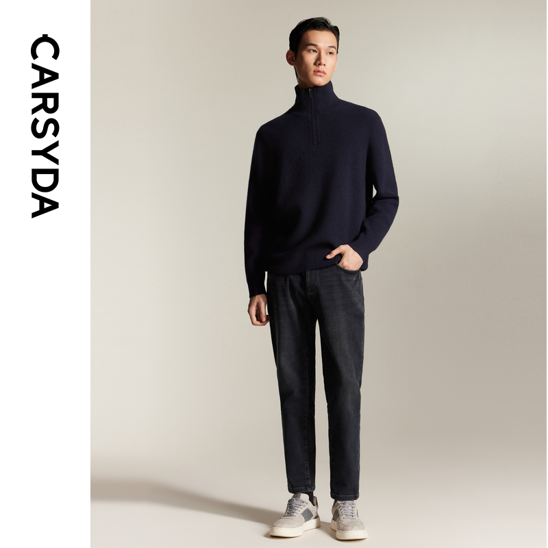 新品 CARSYDA珈仕达男装 加绒直筒九分牛仔裤 保暖盐洗海岛绒