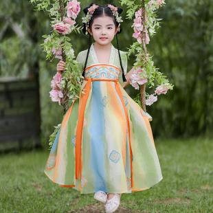 演出服秋季 中秋节服装 裙子唐装 古风超仙古装 儿童汉服女童2025新款