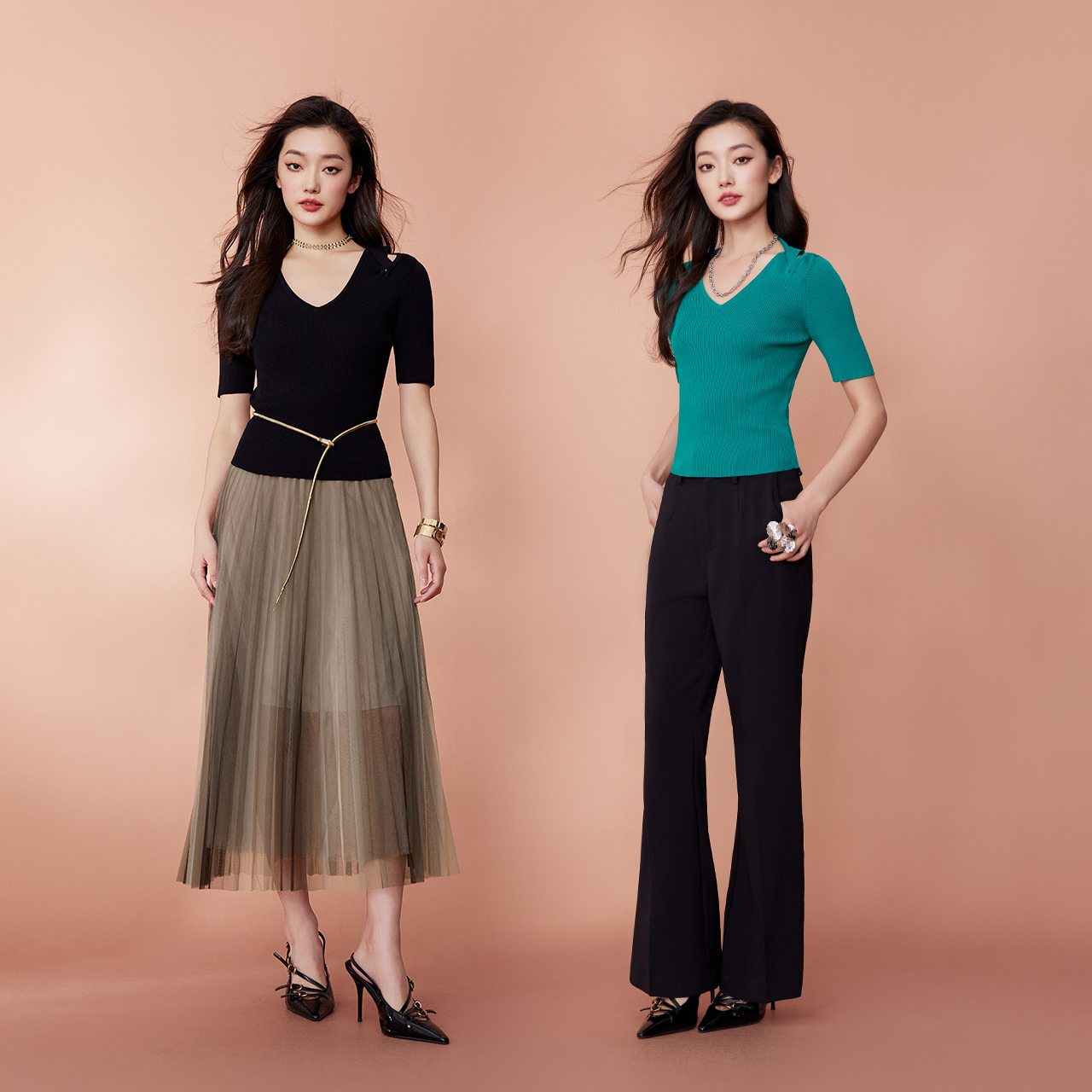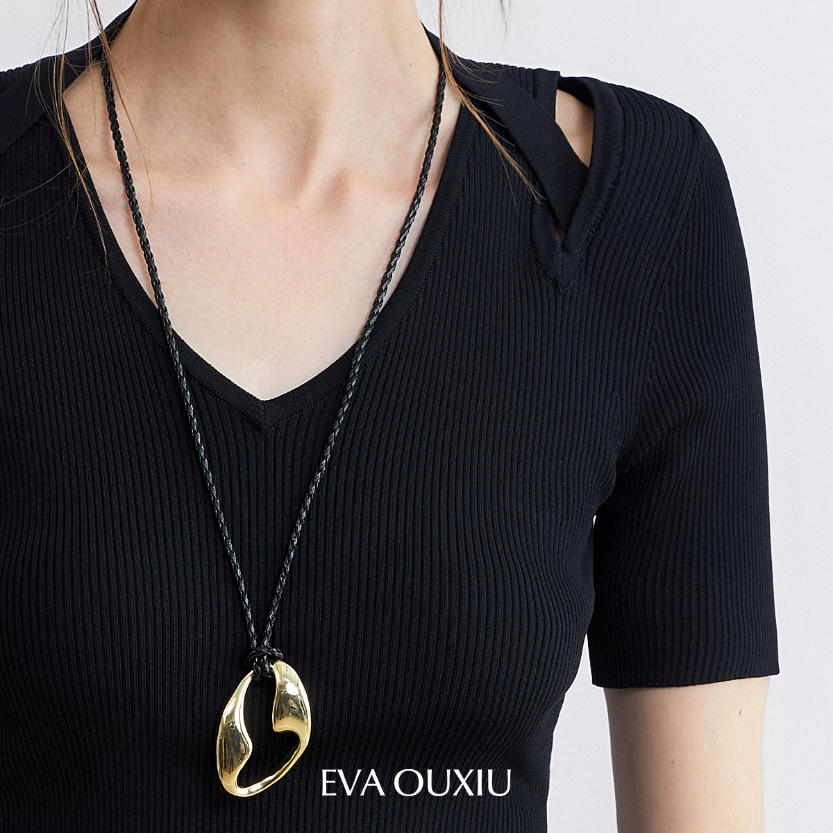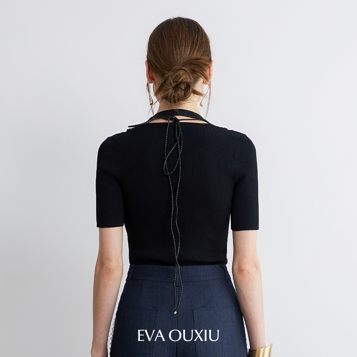 薄款 EVAOUXIU2025年秋季 针织衫 v领设计感修身 女 新款