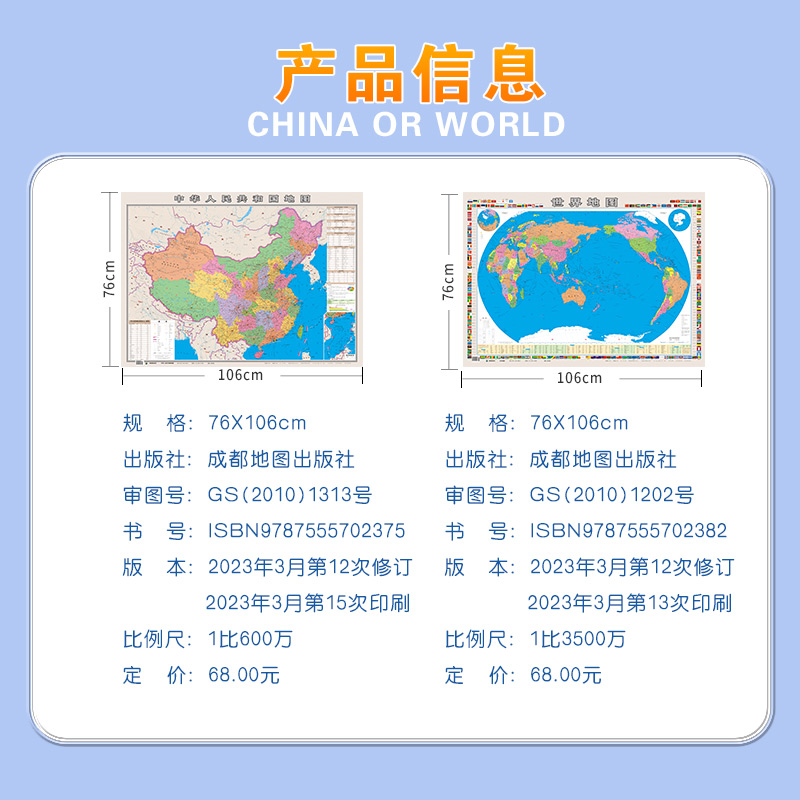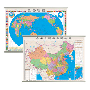 中国地图和世界地图2025年新版 修订版 教室办公室客厅墙贴挂画装 1072mm 饰画 地理 773mm 中国各省市详细地图学生专用版 防水覆膜