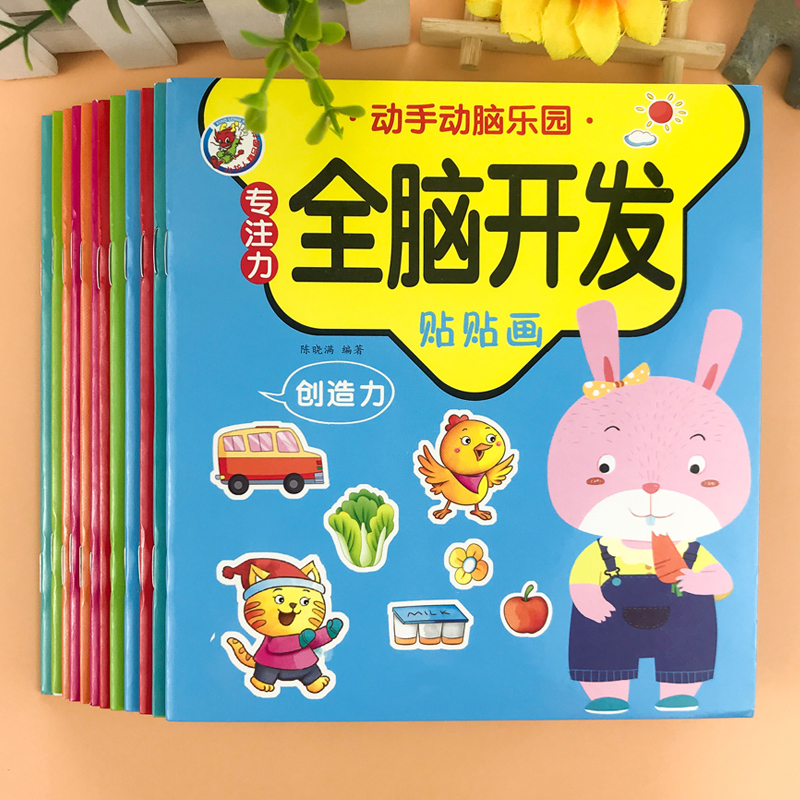 儿童益智专注力贴纸书全套12册 6岁粘贴纸早教绘本0到3岁到6岁启蒙认知书 全脑开发逻辑思维游戏训练幼儿园书籍宝宝贴贴画0