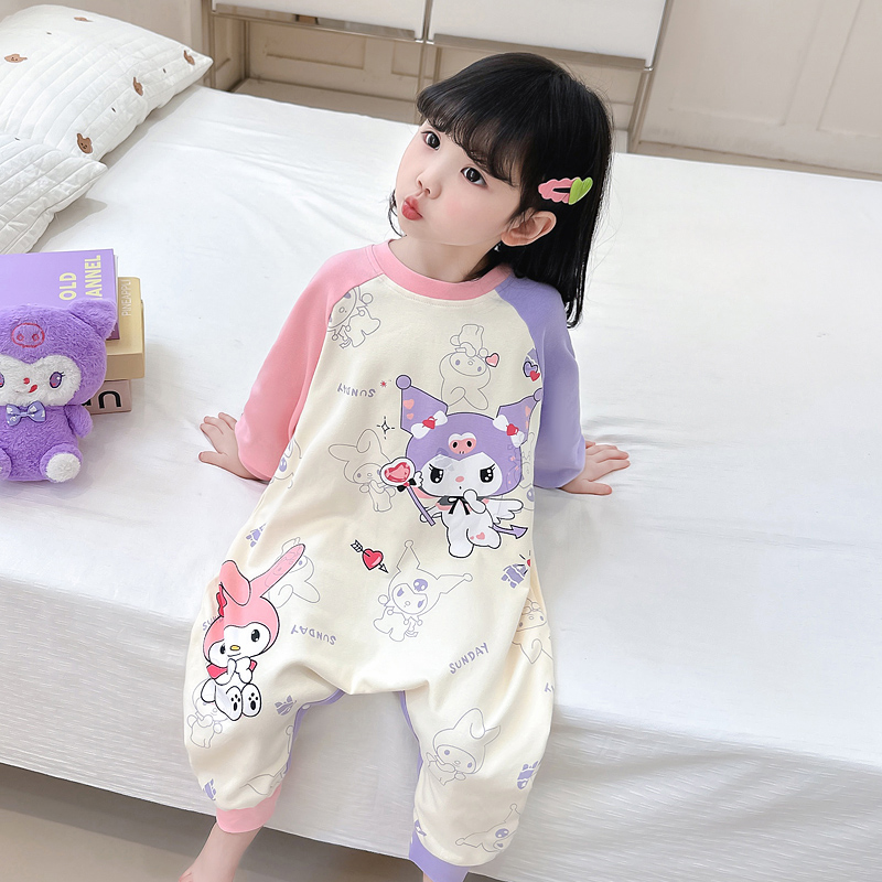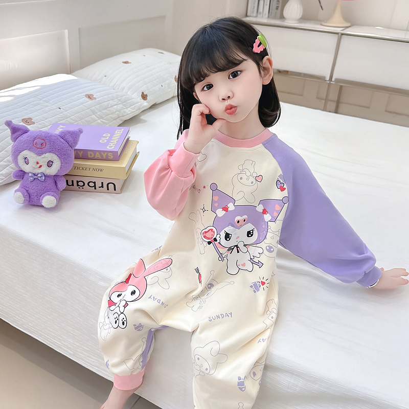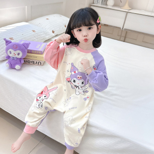 居家服 式 女童连体睡衣2025新款 春秋羊毛拉架拼色爬服女宝宝休闲款