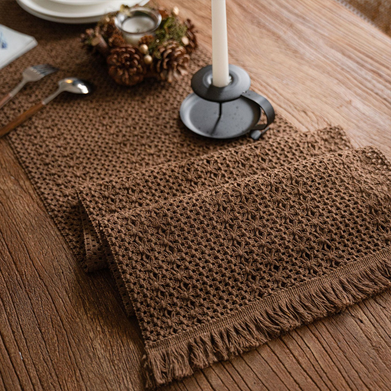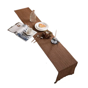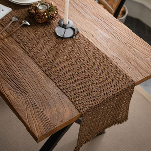 原木风编制流苏桌旗棉麻复古长条桌布茶几垫五斗柜盖布鞋 饰布 柜装