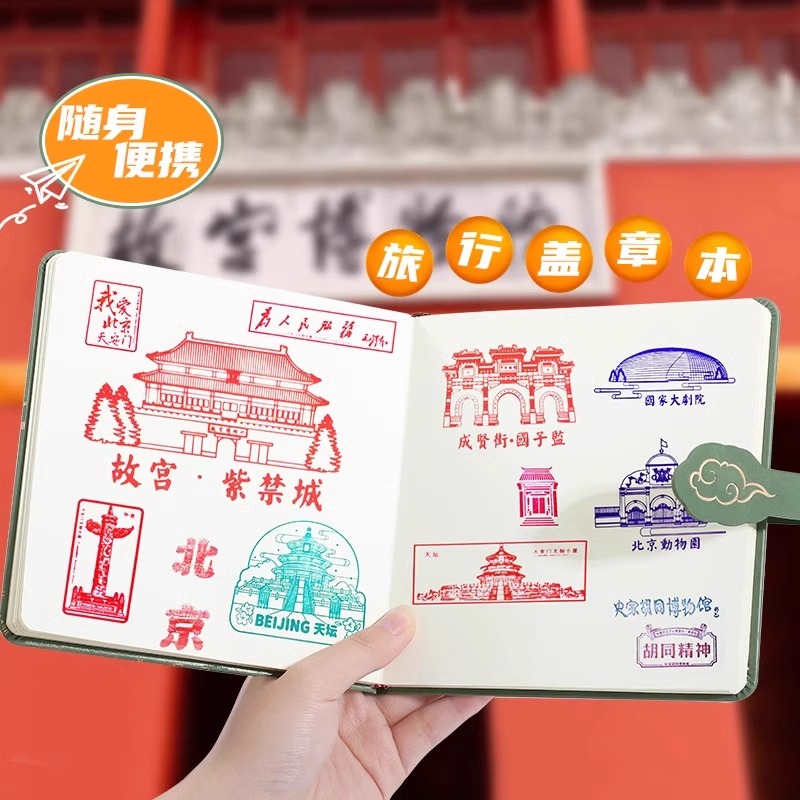 国风盖章收集本旅游打卡集章国潮高颜值北京博物馆小本子随身口袋便携迷你手帐本印章收集本笔记本定制logo