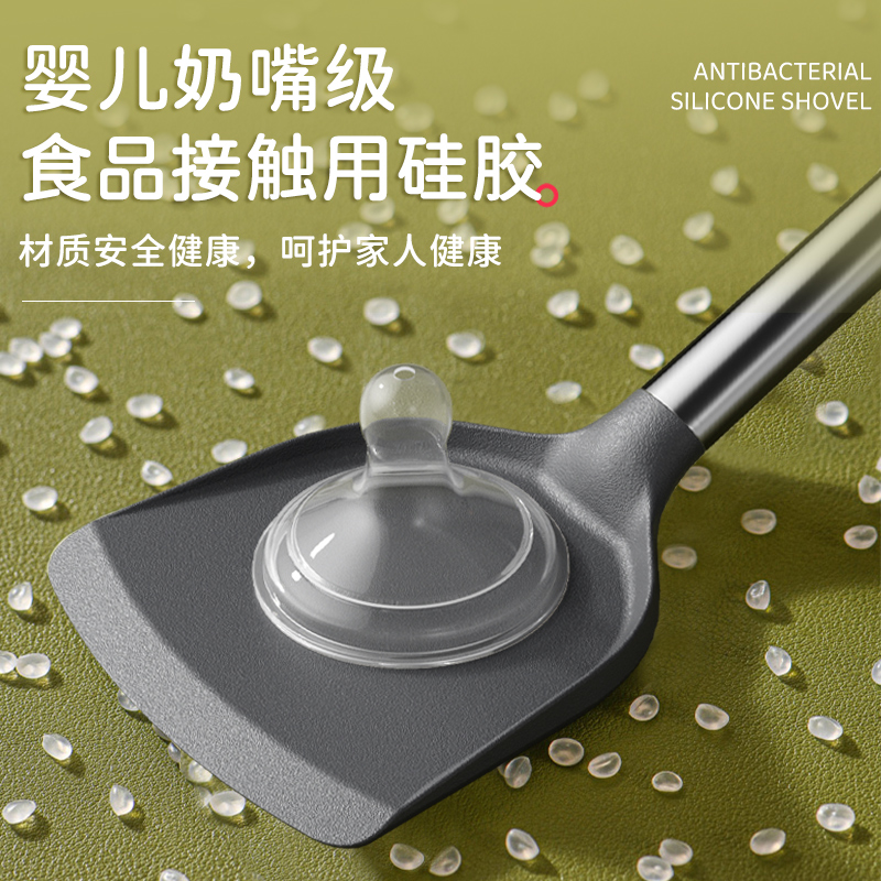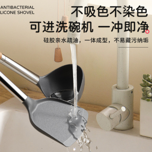 食品级硅胶铲汤勺漏勺家用长柄不伤锅菜铲耐高温不锈钢锅铲勺盛汤