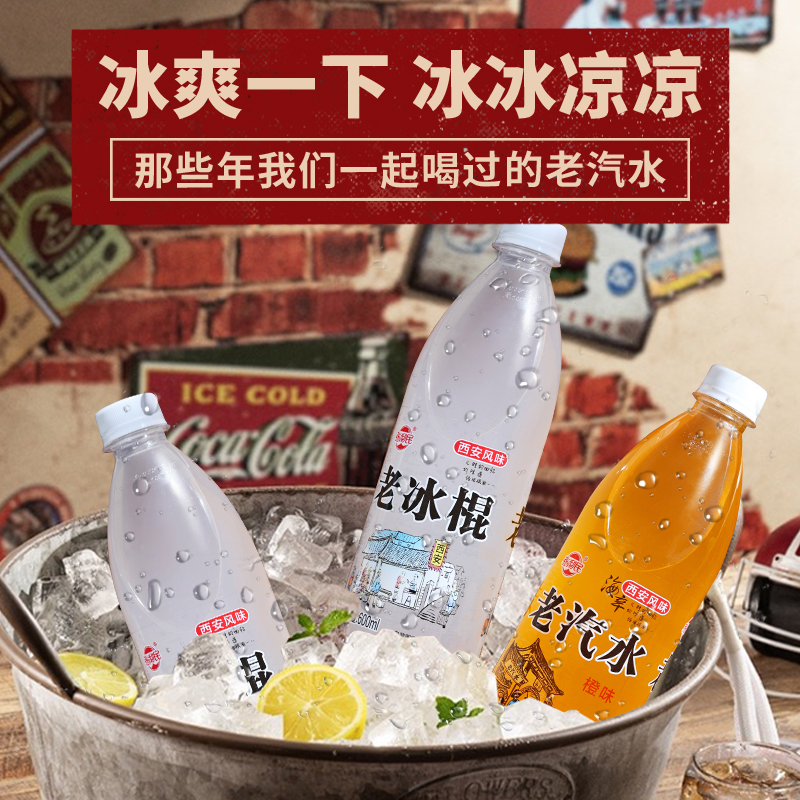 西安老冰棍汽水600ml老汽水橙味 80怀旧童年碳酸饮料雪糕味黑加仑