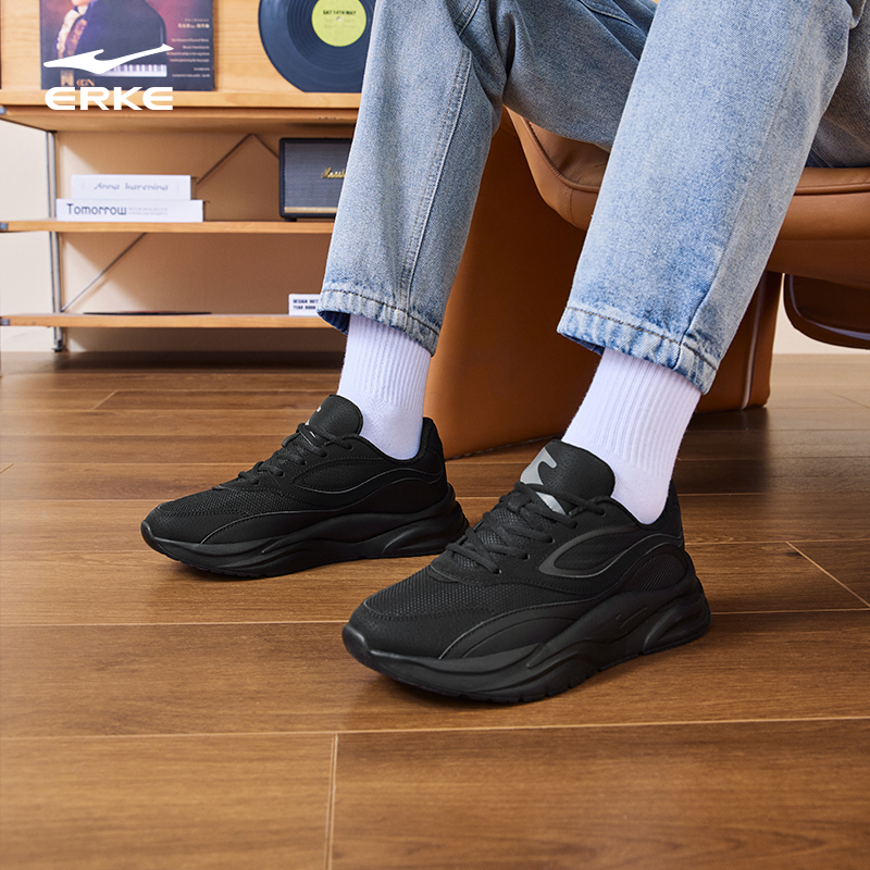 男鞋 新款 软底跑步鞋 网面透气休闲鞋 鸿星尔克运动鞋 黑色爸爸鞋 秋季