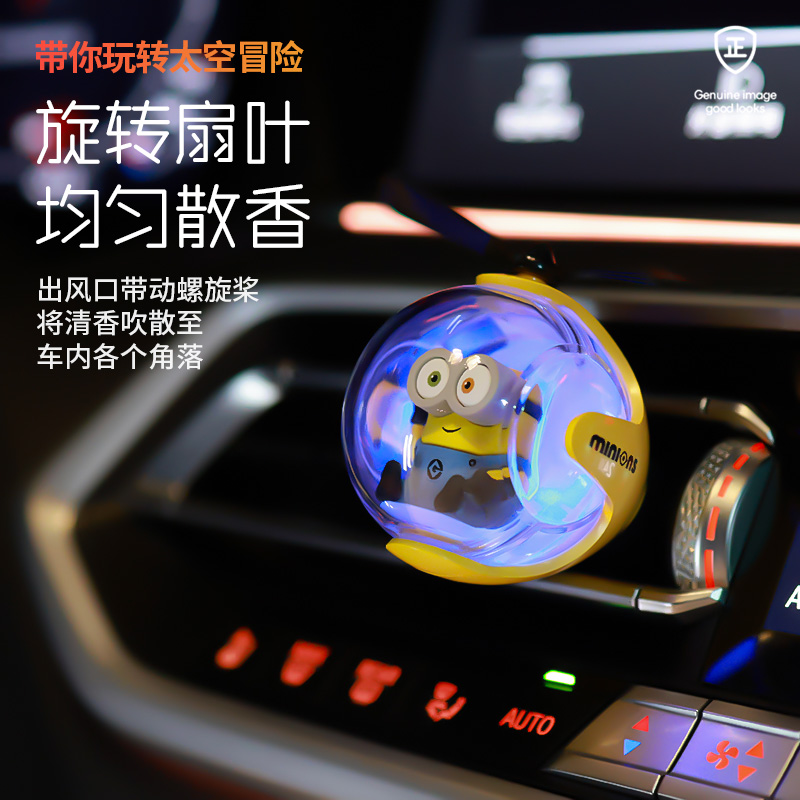 小黄人车载香薰汽车出风口香薰香水飞机发光氛围灯卡通摆件装 饰品
