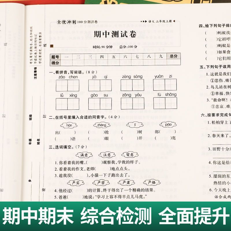 全优冲刺100分测评卷一二三四五六年级上册下册测试卷全套语文数学英语人教版 专项卷期中卷期末卷子真题模拟题试卷 单元
