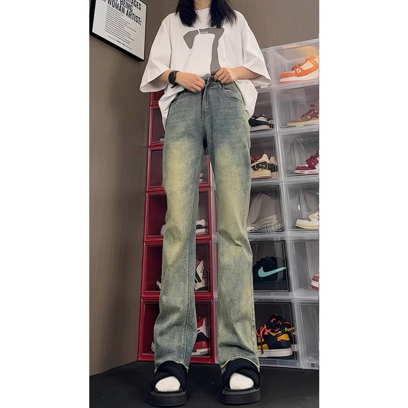 子高个子加长显瘦微喇裤 美式 高街水洗做旧vibe裤 男夏季 弹力牛仔裤