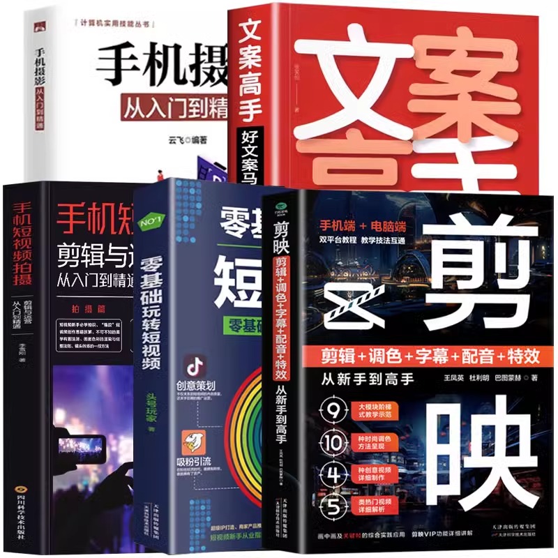 零基础玩转手机短视频制作剪影视频剪辑 短视频剪辑自媒体运营全攻略 书抖音快手小红书软件图像处理摄影教材运营正版 全5册